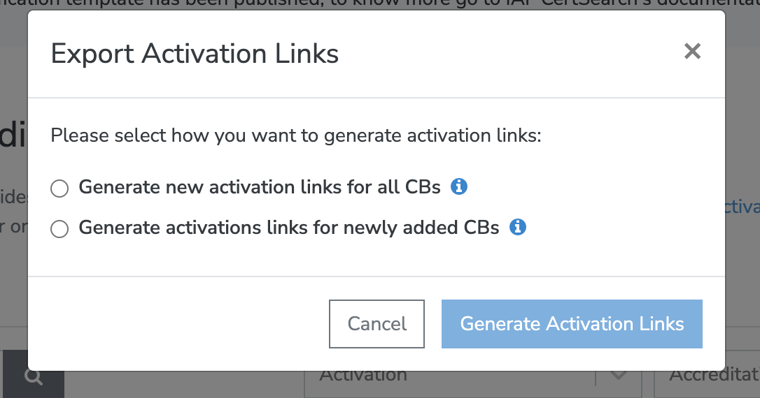 #### **Generation activation links for newly added CBs**