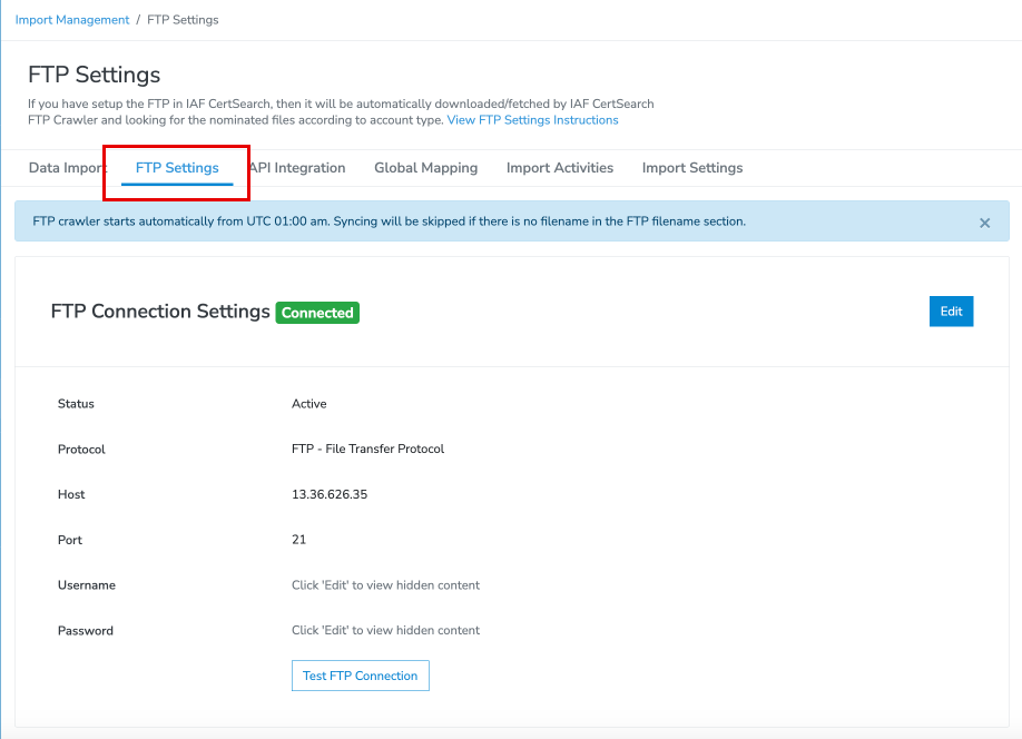 4. To check if the FTP is successfully connected, click the '**Test FTP Connection'** button.